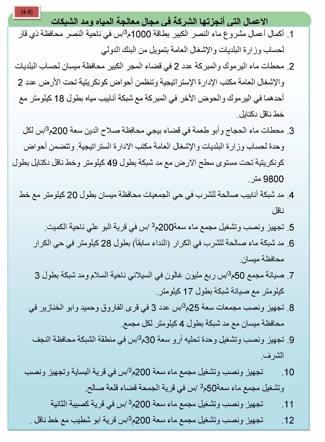 • انجاز مشروع ماء اليرموك ومشروع ماء المبركة في قضاء المجر محافظة ميسان